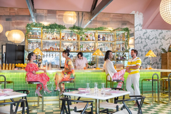A dreamy garden terrace setting with seasonal dishes and a relaxed, design-forward vibe.